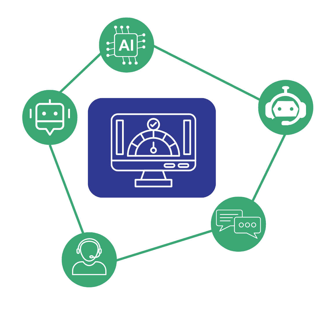 It evaluates each Agentic interaction, reviewing and scoring conversations for accuracy, compliance, and intent alignment, while maintaining a complete audit trail. This same oversight is applied to human agent chats, offering unified performance insights across all service channels.