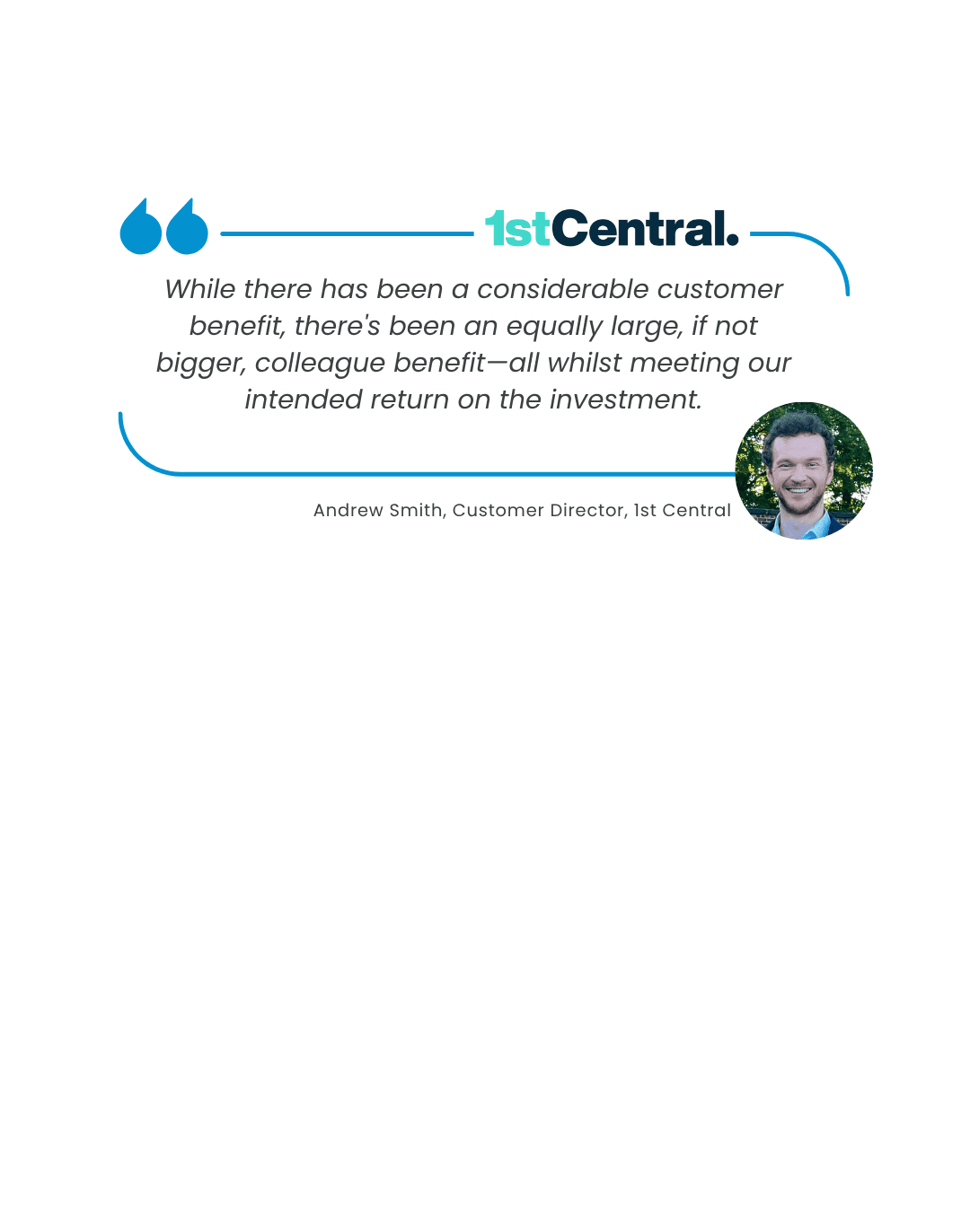 The other thing that was quite compelling for us was that ServisBOT had relevant UK-based financial services examples of the technology in action. And whilst 1st Central is entrepreneurial, we are pragmatic with our governance and our risk appetite. And knowing that other entities were working with ServisBOT in the same regulated environment as us, doing similar things, gave us a huge amount of assurance.